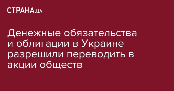 Денежные обязательства и облигации в Украине разрешили переводить в акции обществ