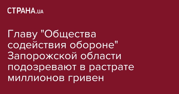 Руководитель Запорожского областного Общества содействия обороне Украины подозревается в растрате имущества своей организации стоимостью почти 3 миллиона гривен. Об этом сообщает пресс-служба прокуратуры в Запорожской области.