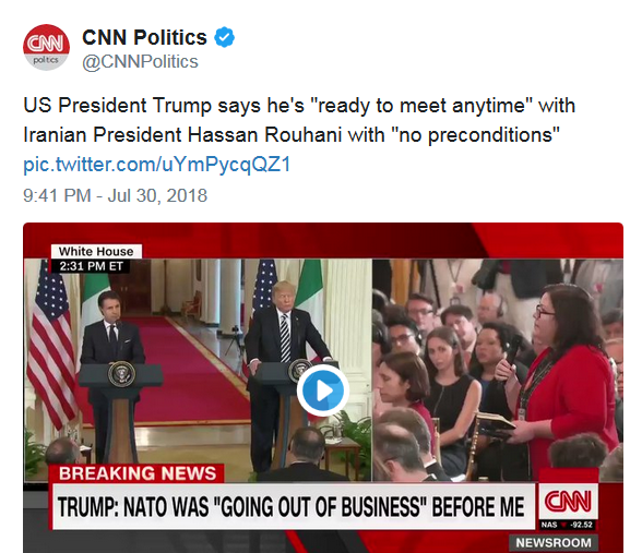 На фоне растущего напряжения в ирано-американских отношениях, президент США Дональд Трамп заявил, что готов к встрече с руководством Ирана. Он также отметил, что для встречи не существует "никаких предварительных условий", передает CNN.