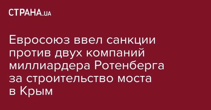 Евросоюз ввел санкции против двух компаний миллиардера Ротенберга за строительство моста в Крым
