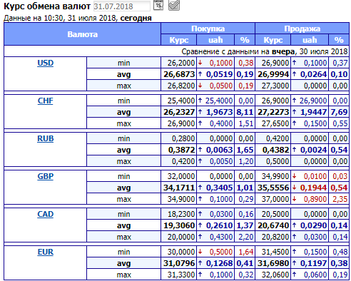 Как сообщает ubr.ua последние торги июля начались с подорожания доллара на 4 копейки - до 26,80 грн./$. Начальник управления дилинговых операций Райффайзен банка Аваль Юрий Гриненко отметил высокую активность межбанка с утра 31 июля.