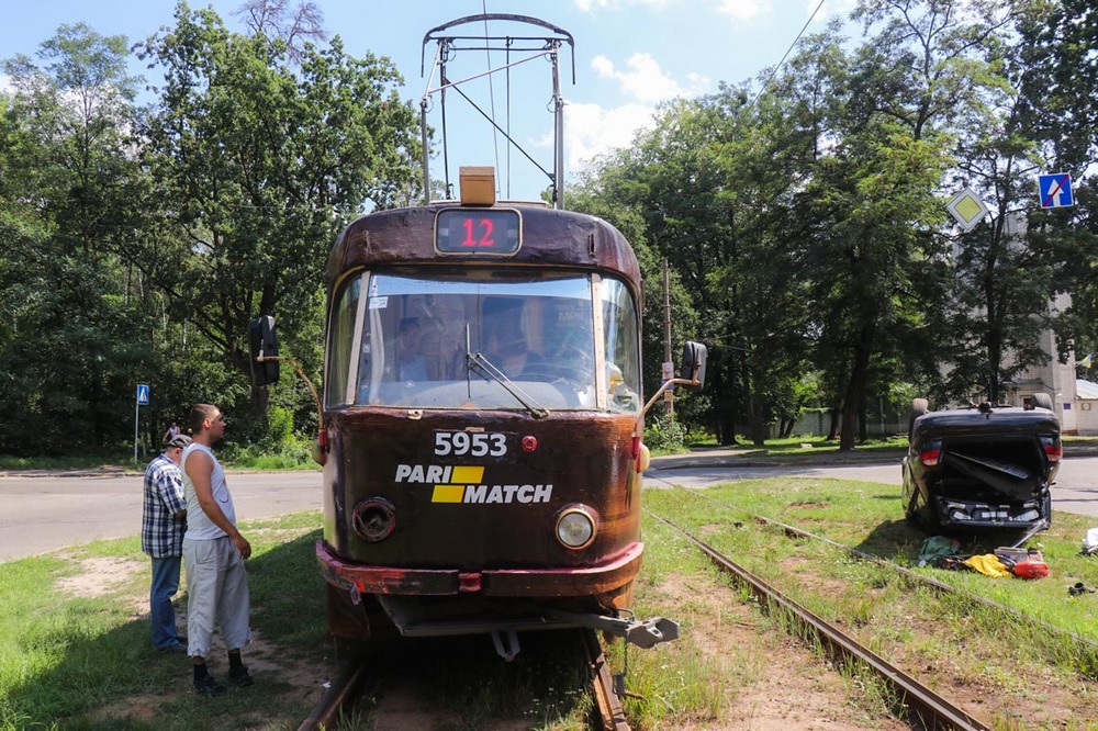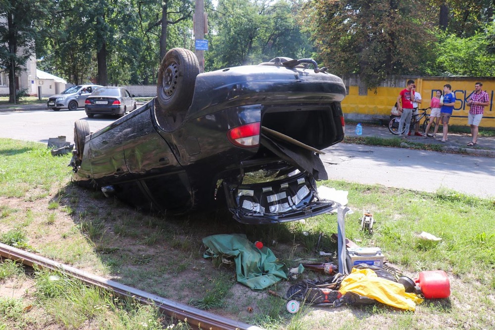 В Киеве легковушка врезалась в трамвай и перевернулась на крышу. Больше всего пострадал ребенок