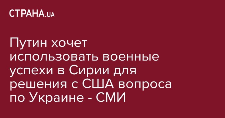 Путин хочет использовать военные успехи в Сирии для решения с США вопроса по Украине - СМИ