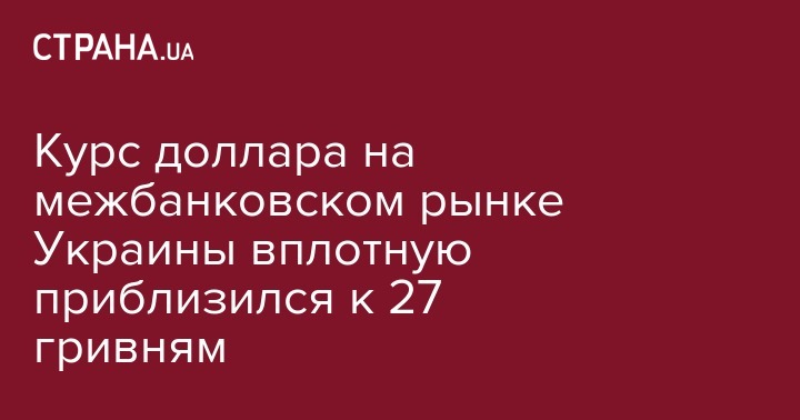 Котировки гривни к окончанию торгов составили 26,92-26,97 грн/$1.