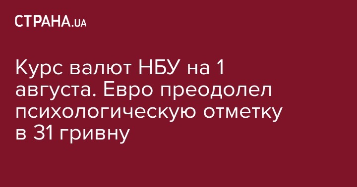 Курс валют НБУ на 1 августа. Евро преодолел психологическую отметку в 31 гривну