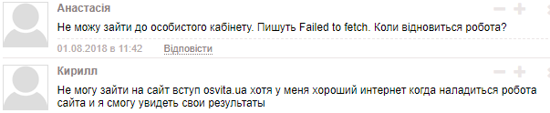 Поступающие в комментариях на сайте вступ osvita.ua пишут, что при загрузке появляется надпись failed to fetch.