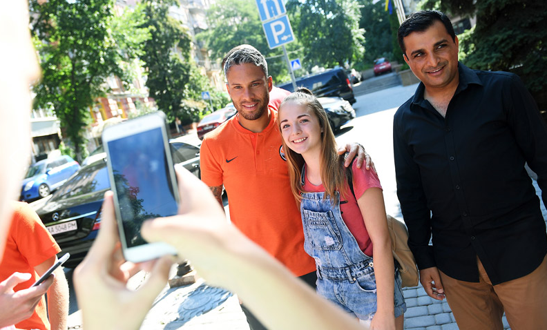 18:09 В день матча команда "Шахтер" прогулялась по Киеву. Игроки фотографировались с болельщиками и раздавали автографы. Фото и видео с прогулки "горняков" обнародовала пресс-служба команды.