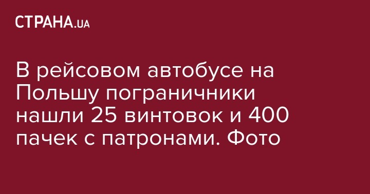 "В пункт пропуска "Шегини" прибыл рейсовый автобус "Перемышль - Львов". В ходе проверки транспортного средства совместная смотровая группа с привлечением служебной собаки нашла в багажном отделении 25 пневматических винтовок калибром 4,5 мм и 400 пачек с патронами общим количеством 100 тысяч пуль", - отмечается в сообщении.