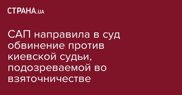 "1 августа текущего года прокурорами САП утвержден и направлен в Голосеевский районный суд города Киева обвинительный акт в отношении судьи Окружного административного суда города Киева, обвиняемой в совершении преступления, предусмотренного ч. 3 ст. 368 УК Украины, а именно в получении должностным лицом, занимающим ответственное положение, неправомерной выгоды за совершение таким должностным лицом в интересах того, кто предоставляет неправомерную выгоду, любого действия с использованием предоставленной ему власти и служебного положения", - уточнили в пресс-службе САП.