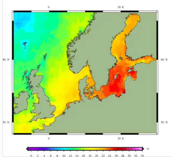 Самое большое отклонение температуры воды от нормы наблюдается сейчас в Балтийском море, где температура более чем на пять градусов превышает многолетние средние показатели, свидетельствуют данные Датского института метеорологии