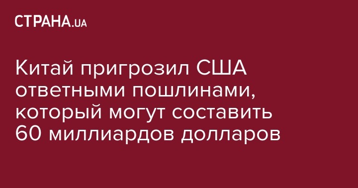 Китай пригрозил США ответными пошлинами, который могут составить 60 миллиардов долларов
