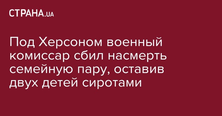 В Херсонской области военный комиссар насмерть сбил молодую пару. Об этом пишет пресс-секретарь прокурора Лариса Сарган на своей странице в Facebook.