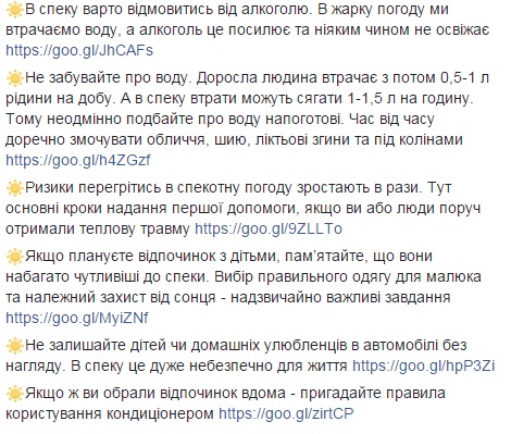 "Взрослый человек теряет с потом 0,5-1 л жидкости в сутки. А в жару потери могут достигать 1-1,5 л в час. Поэтому непременно позаботьтесь о воде. Время от времени уместно смачивать лицо, шью, локтевые изгибы и под коленями", - объяснила Супрун.