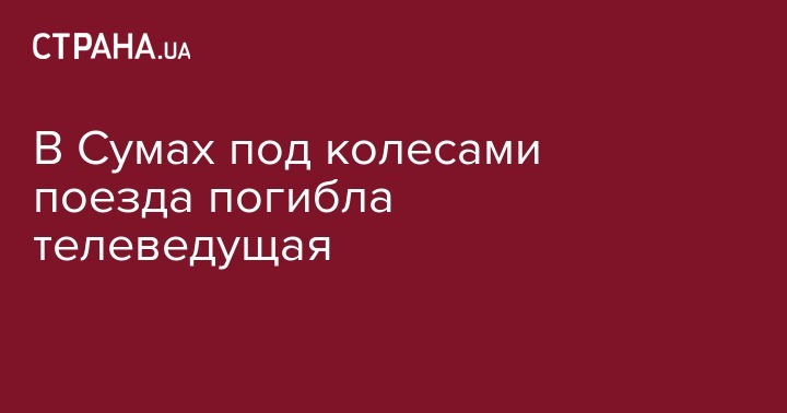 В пятницу, 3 августа, в Сумах под поездом погибла телеведущая телекомпании "Академ TV" Юлия Тютченко. Трагедия произошла около 18:30 на участке ж\д пути "Сумы - Сумы-Товарная" в районе Голубых озер и улицы Героев Крут.