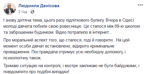 Девочке, которую в Одессе избили сверстницы, начали оказывать психологическую помощь - Денисова