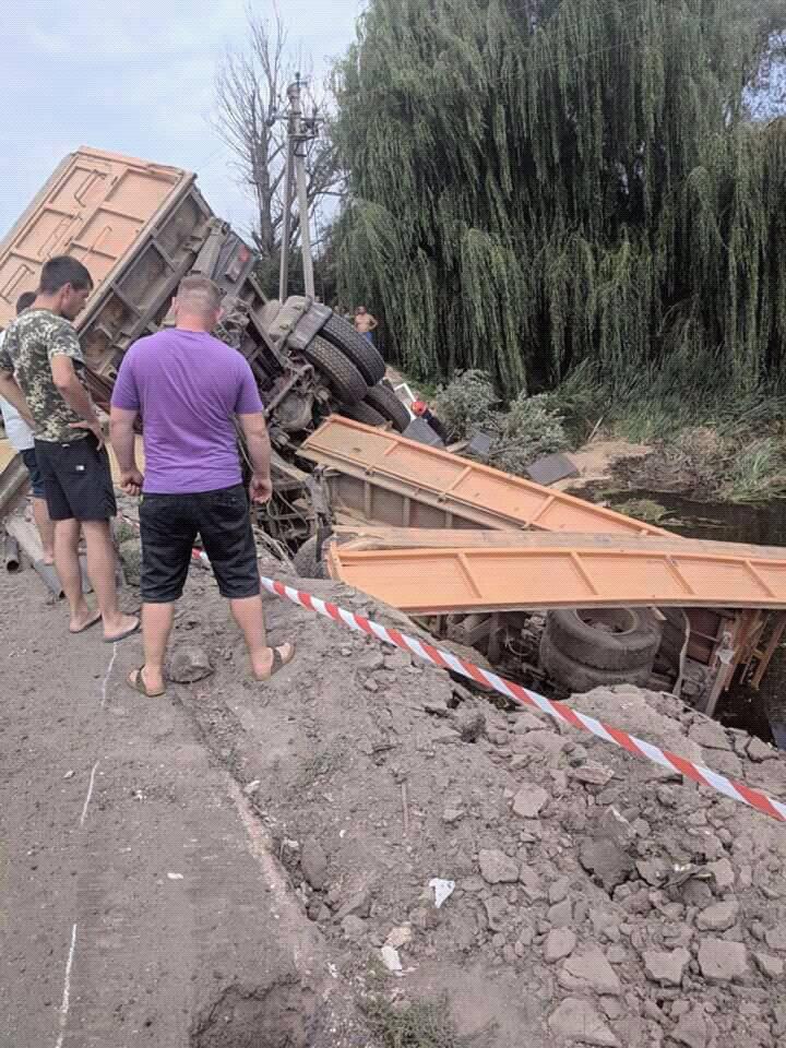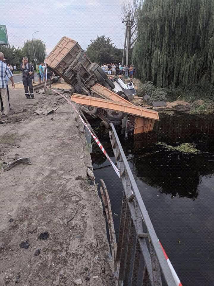 Появились фото сорвавшегося с моста грузовика под Хмельницком