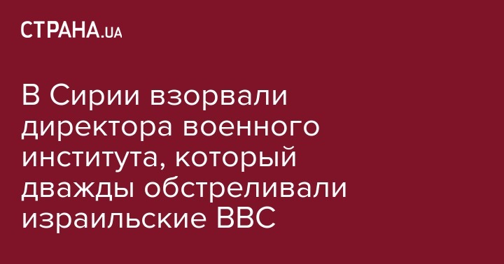 В Сирии взорвали директора военного института, который дважды обстреливали израильские ВВС