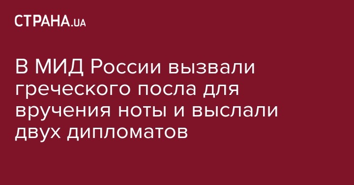 Министерство иностранных дел Российской Федерации вручило послу Греции в России Андреасу Фриганасу ноту в связи с "недружественными действиями Афин в июле" и объявило о "зеркальных мерах в ответ", которые заключаются в высылке дипломатов.