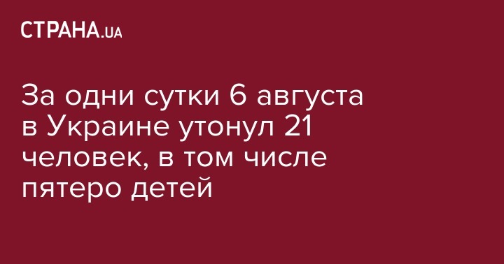 В течение суток 6 августа на водоемах Украины погиб 21 человек. Среди них - пятеро детей. Об этом сообщает пресс-служба ГосЧС.