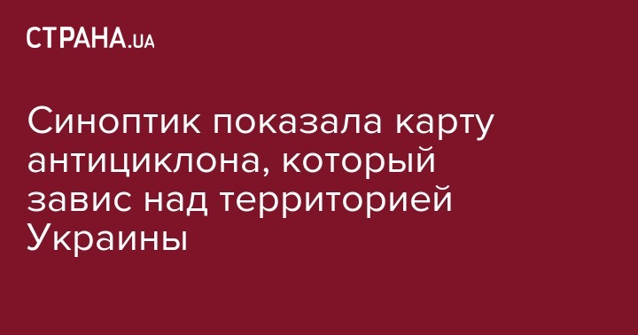 Синоптик показала карту антициклона, который завис над территорией Украины