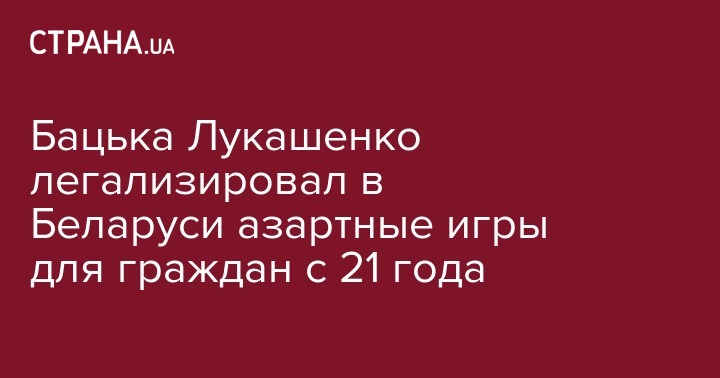 Президент Беларуси Александр Лукашенко подписал указ "О совершенствовании правового регулирования игорного бизнеса", которым увеличен возрастной ценз для посещения игорных заведений с 18 до 21 года.