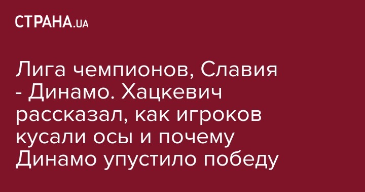 Лига чемпионов, Славия - Динамо. Хацкевич рассказал, как игроков кусали осы и почему Динамо упустило победу