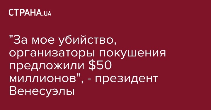 "Были наняты 11 убийц, которые участвовали в беспорядках в 2014 и 2017 годах. В качестве оплаты им было предложено $50 млн и убежище в США", - заявил Мадуро.