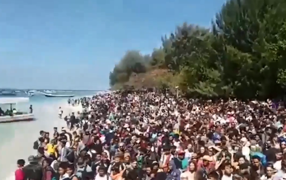 Появились фото, как тысячи испуганных землетрясением туристов бегут из Индонезии