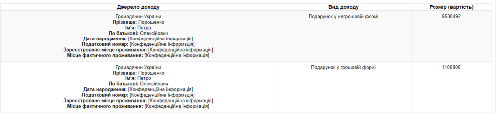 Президент Петр Порошенко подарил старшему сыну, нардепу от БПП Алексею Порошенко 1,1 миллиона гривен и часть прав на жилой дом в Козине на 9,5 миллиона гривен. Сообщение о соответствующих изменениях в имущественном состоянии Алексей Порошенко внес в свою электронную декларацию.