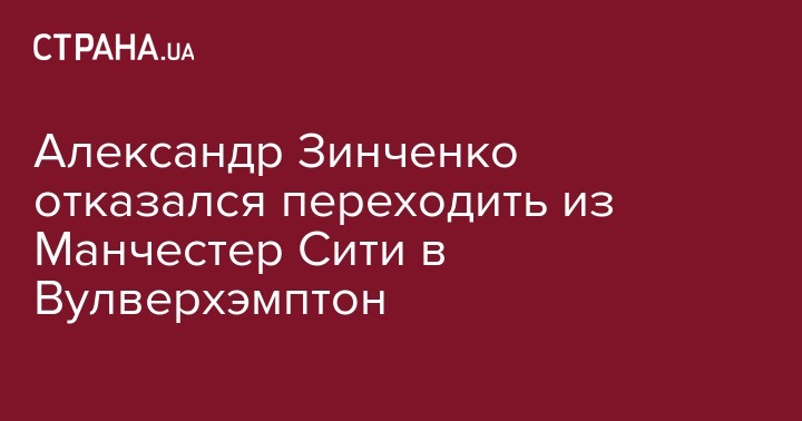 В четверг, 9 августа украинский полузащитник Манчестер Сити Александр Зинченко отказался переходить в Вулверхэмптон. Сумму за его трансфер оценивали в 16 млн фунтов. Предыдущий футбольный клуб украинца Александра Зинченко - Уфа мог еще раз обогатиться за счет его перехода. Но наш игрок отказался уходить из команды Пепа Гвардиолы.