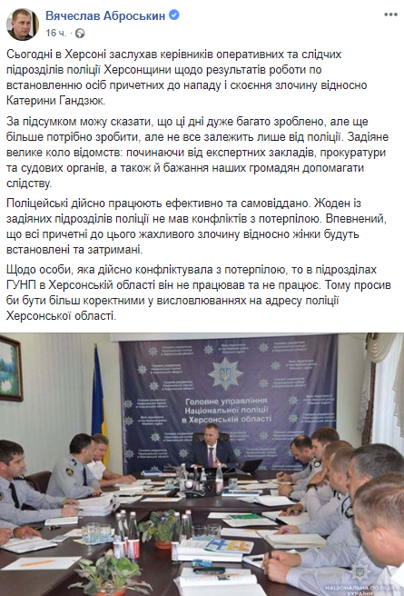 Он также уверяет, что человек, который действительно конфликтовал с Гандзюк, в полиции Херсонской области не работал.