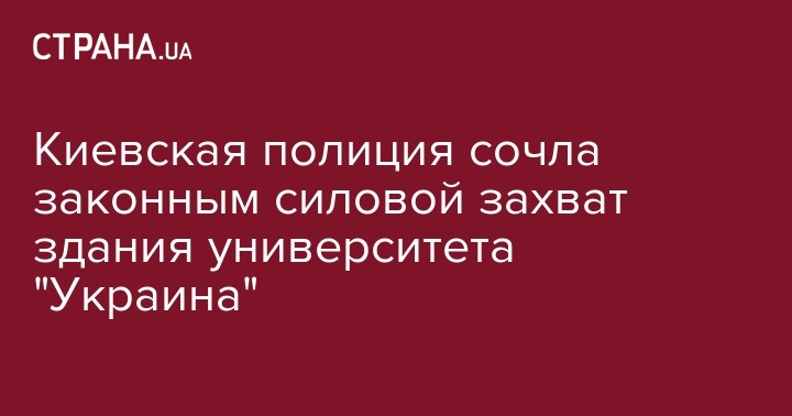 В киевской полиции посчитали вполне законным силовой захват неизвестными здания университета "Украина", который произошел вечером 7 августа. Об этом говорится в сообщении на сайте Нацполиции Киева.