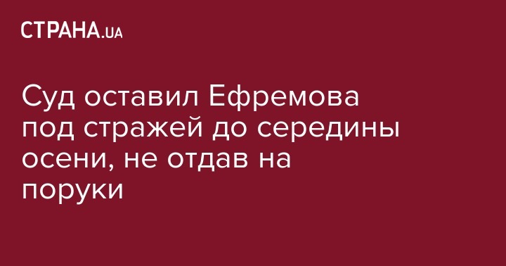 "Суд считает необходимым продлить действие меры пресечения в виде содержания под стражей в отношении обвиняемого на срок 60 суток", – говорится в решении. Ефремов остается под стражей до 7 октября включительно.