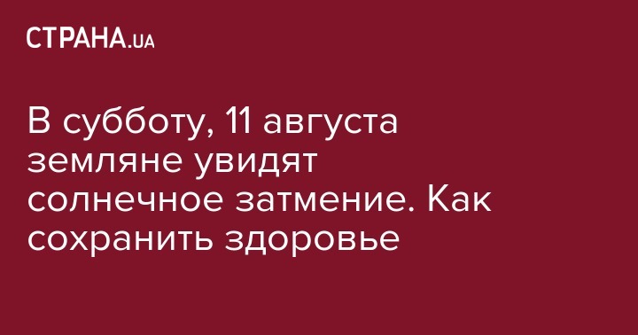 В субботу, 11 августа земляне станут свидетелями солнечного затмения. Оно будет последним в "коридоре" летних затмений нынешнего года (предпоследнее произошло в пятницу, 13 июля - Прим.Ред.). Однако украинцам "не повезло", на территории нашей страны затмение не будет видно. Его увидят только в Канаде, Северной Европе, Гренландии, Казахстане, Киргизии, Монголии и Китае. Время затмения с 11:02 по 14:30 по Киеву.