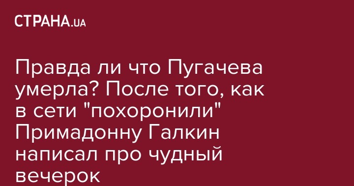 Правда ли что Пугачева умерла? После того, как в сети "похоронили" Примадонну Галкин написал про чудный вечерок