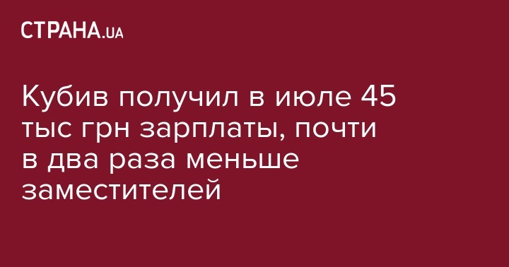 Кубив получил в июле 45 тыс грн зарплаты, почти в два раза меньше заместителей