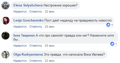 "У меня нет больше никакой информации о самолете и об Олеге, и я, если честно, начинаю подозревать, что над нами, возможно, нехило посмеялись, увы. Пожалуйста, будьте спокойны. Утром все равно что-то выяснится", - написала она.
