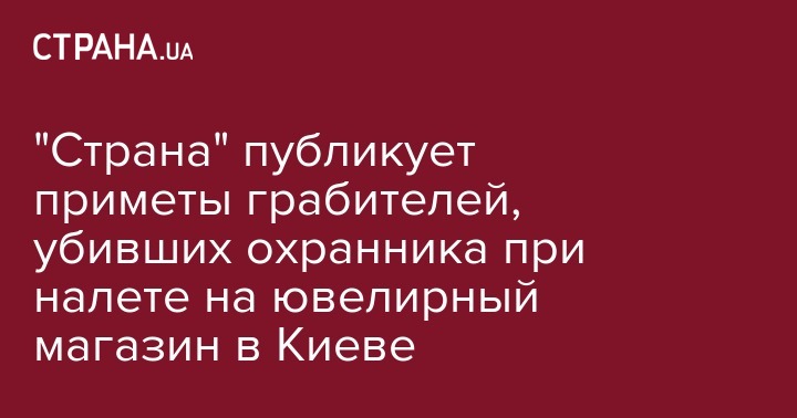 В полиции сумели выяснить приблизительные приметы грабителей, совершивших налет на ювелирный магазин. Ограбление закончилось смертью охранника. Все грабители были спортивного телосложения в возрасте около 30-35 лет. Об этом сообщают источники "Страны" в Нацполиции.