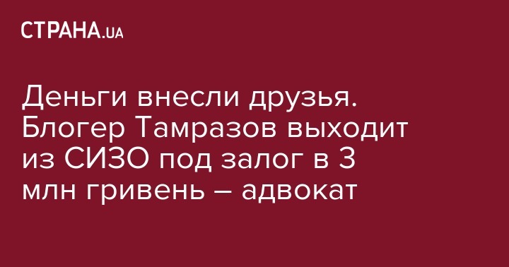 Деньги внесли друзья Тамразова: "Все документы в СИЗО уже подали, ждем (его выхода. –Прим. ред.)", – сказал он. По словам адвоката, на данный момент оформляется выход Тамразова. Он добавил, что залог внесли друзья Тамразова еще 10 августа.
