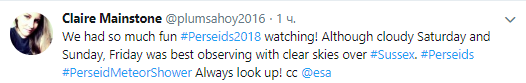 Наиболее заметным астрономическое явление было в северном полушарии. Метеоры можно было наблюдать в северной части неба, в районе созвездия Персея, отсюда и название. Персеиды будут продолжаться вплоть до 24 августа, но пик прошел прошлой ночью. С полуночи до четырех утра на небе появлялись до 100 вспышек каждый час.