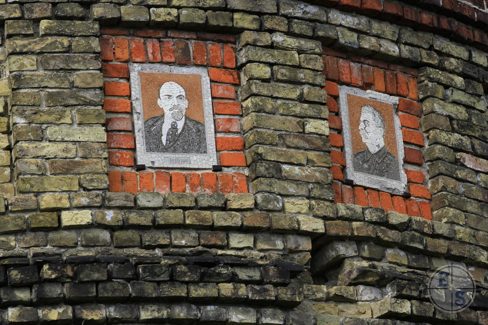 Мозаичные портреты Ленина и Сталина были размещены в 1930-х годах в центре Новгород-Северского на водонапорной башне 1901 года, рядом с базарной площадью.