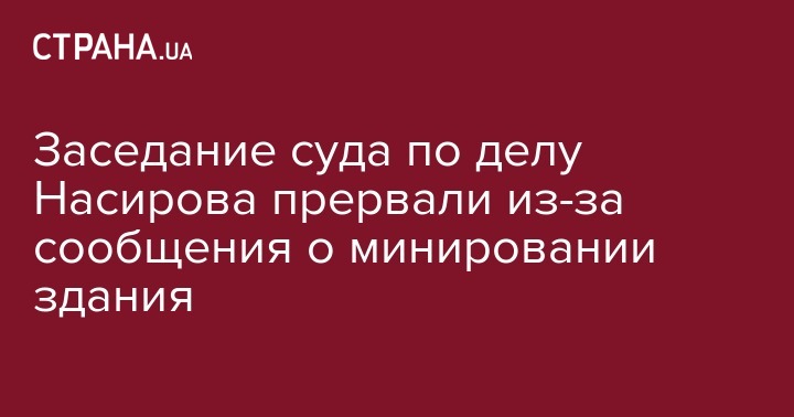 Заседание Шевченковского райсуда Киева по обвинению экс-главы ГФС Украины Романа Насирова в злоупотреблении служебным положением прервалось из-за сообщения о минировании здания суда. Об этом на своей странице в Facebook сообщила журналистка Ирина Салий.