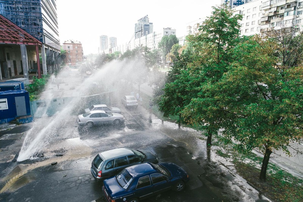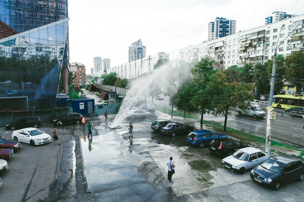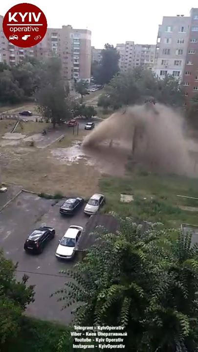 Напомним, что в мае в Киеве на Святошино прорвало трубу и затопило улицу. Фонтан прикрыли досками.