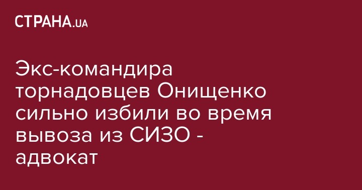 Экс-командира добровольческого подразделения "Торнадо" Руслана Онищенко избили во время вывоза из Лукьяновского СИЗО, сообщил его адвокат Владимир Якимов, пишет Интерфакс-Украина.