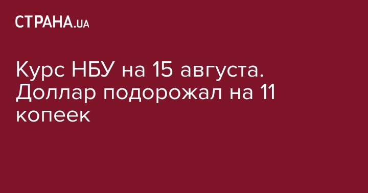 Курс НБУ на 15 августа. Доллар подорожал на 11 копеек