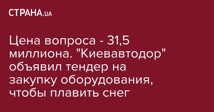 Цена вопроса - 31,5 миллиона. "Киевавтодор" объявил тендер на закупку оборудования, чтобы плавить снег