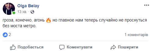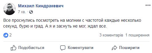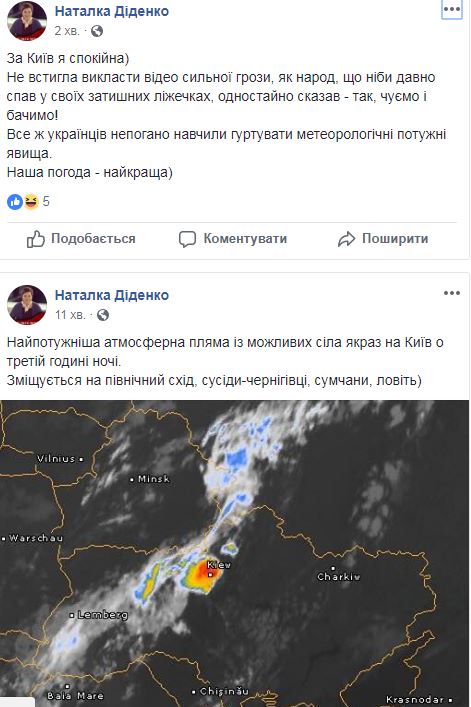 Около 3:00 в ночь с 15 на 16 августа на Киев обрушились дожди, град и мощнейшие грозы. Небывалые масштабы стихии оторвали  среди ночи от уютных кроватей огромное количество жителей города, принявшихся закрывать окна и спасать сушившееся белье.