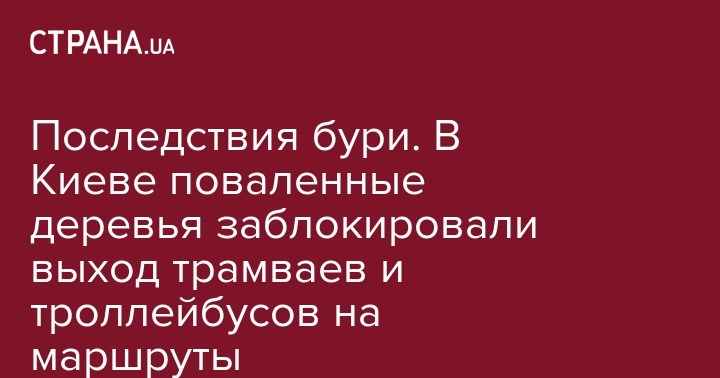 Кроме того, два упавших дерева заблокировали с 05:00 выезд троллейбусов из депо №2 и движение троллейбусов №№ 22, 27, 30, движение троллейбусов № 2 в направлении метро "Шулявская", троллейбусов №№ 22, 27, 30 до Индустриального путепровода и троллейбусов маршрута № 30 ул. Милославская - ст. "Зенит". Сейчас движение восстановлено.