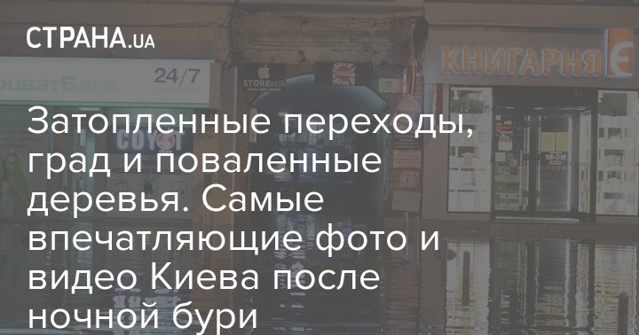Ночью 16 августа на Киев внезапно налетела гроза с градом. За двадцать минут улицы города затопило, многих разбудили вспышки молний и раскаты грома. А главная улица Крещатик оказалась засыпана горами мусора, там были повалены каштаны. Последствия ночной бури в соцсетях публикуют киевляне.