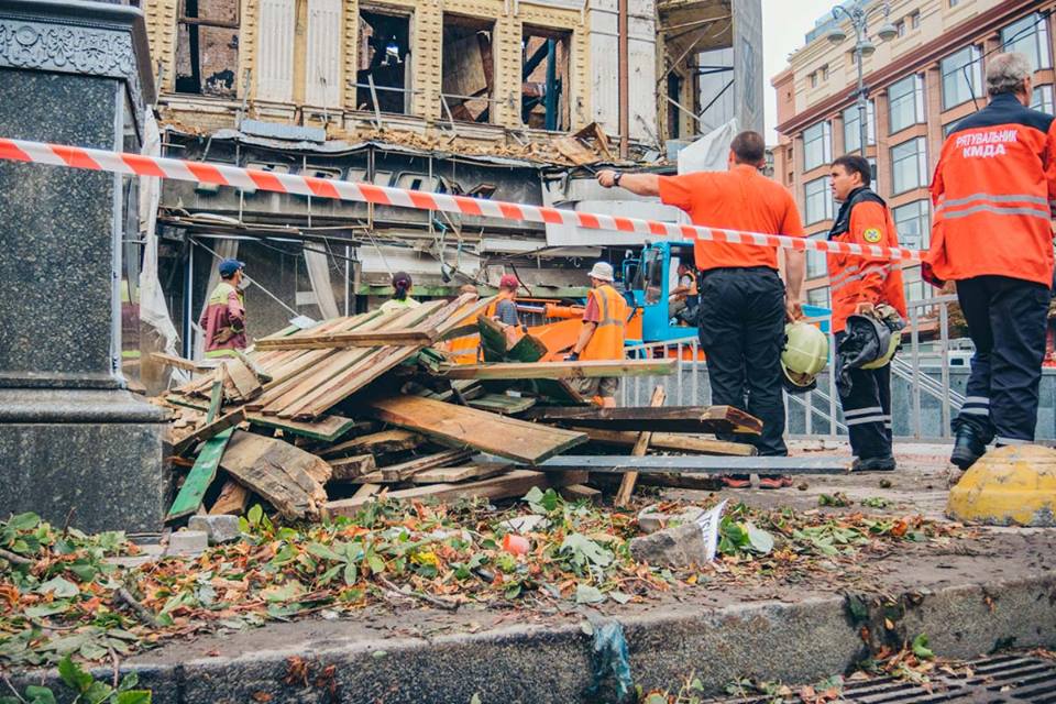 После ливня на Крещатике обвалилось здание старого гастронома, которое ранее едва уцелело при пожаре.